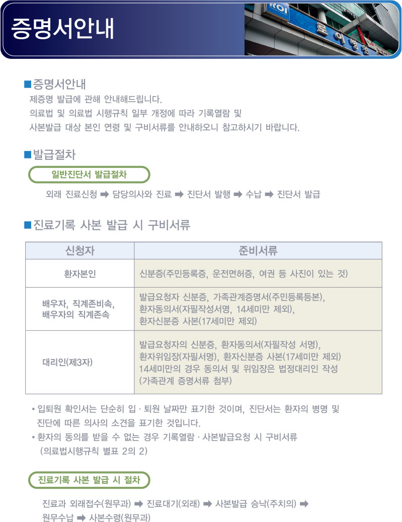 • 입원예약안내 증명서발급 진료안내 병원소개